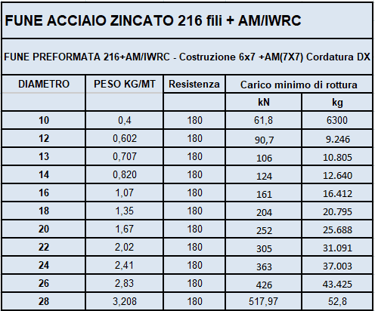 Fune 216+AM/IWRC fili ACCIAIO ZINCATO