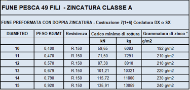 Fune abitualmente prodotta nei diametri 9,10,11,12,13,14,15 e 16.