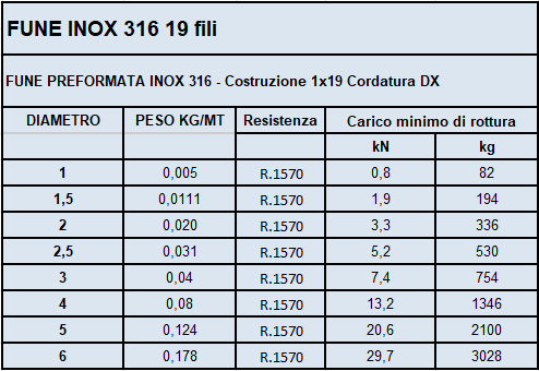 Spiral strand 19 wires stainless steel INOX AISI-316 structure 1x19.