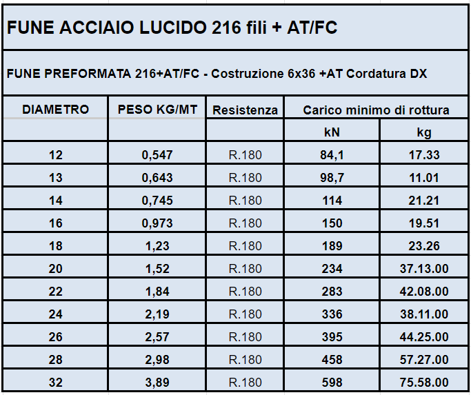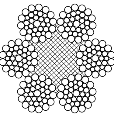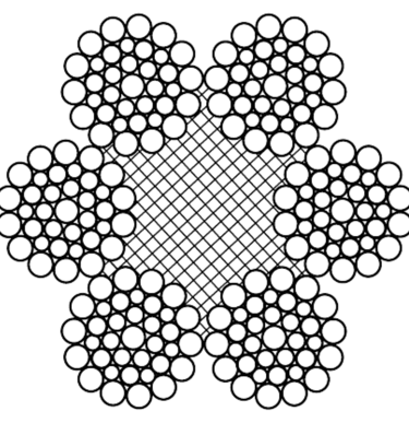 Bright steel wire rope with 6 strands of 36 wires each + textile core. Extremely flexible rope with Warrington Seale construction (strands with wires of different diameters).