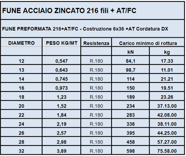 Galvanized steel wire rope with 6 strands of 36 wires each + textile core. Extremely flexible rope with Warrington Seale construction (strands with wires of different diameters)