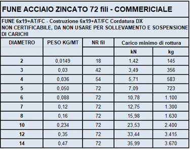 Galvanized steel wire rope consisting of 6 strands of 12 wires each. The construction and number of wires vary depending on the diameter.
