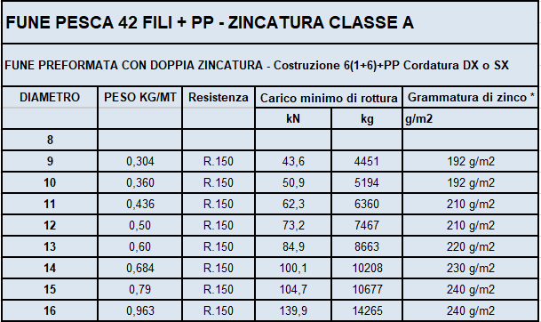 Double-galvanized wire rope with 6 strands of 7 wires and our own exclusive 100% water-repellent fabric core. Right or left cross-section wire rope available upon request. The cables are typically coated with protective grease for added strength, but can be supplied ungreased upon request. Marks are affixed to the cables every 50 meters, but can be removed upon request.